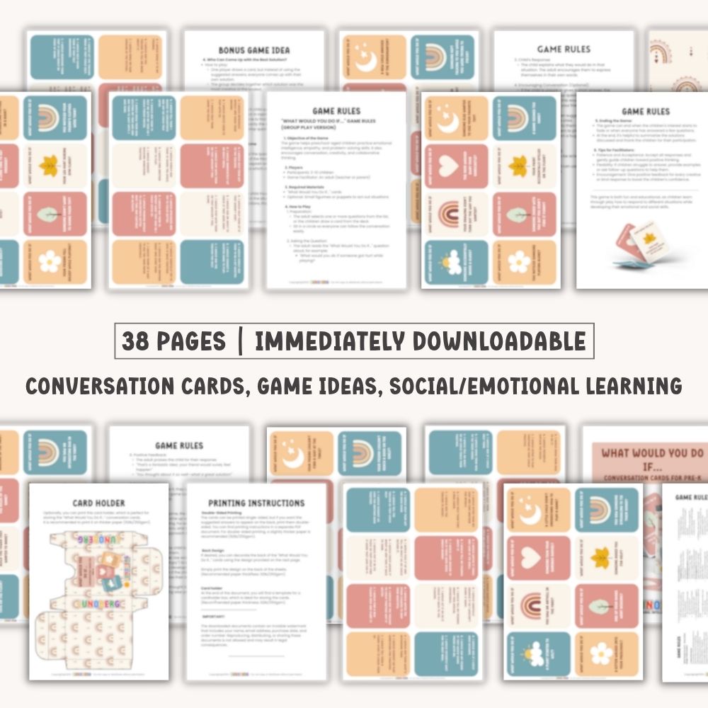Enhance preschool-aged children’s emotional intelligence, creativity, and problem-solving skills with the “What Would You Do If…” Conversation starter game for preschoolers! This downloadable, easy-to-print PDF offers an exciting and educational activity that both entertains and teaches.