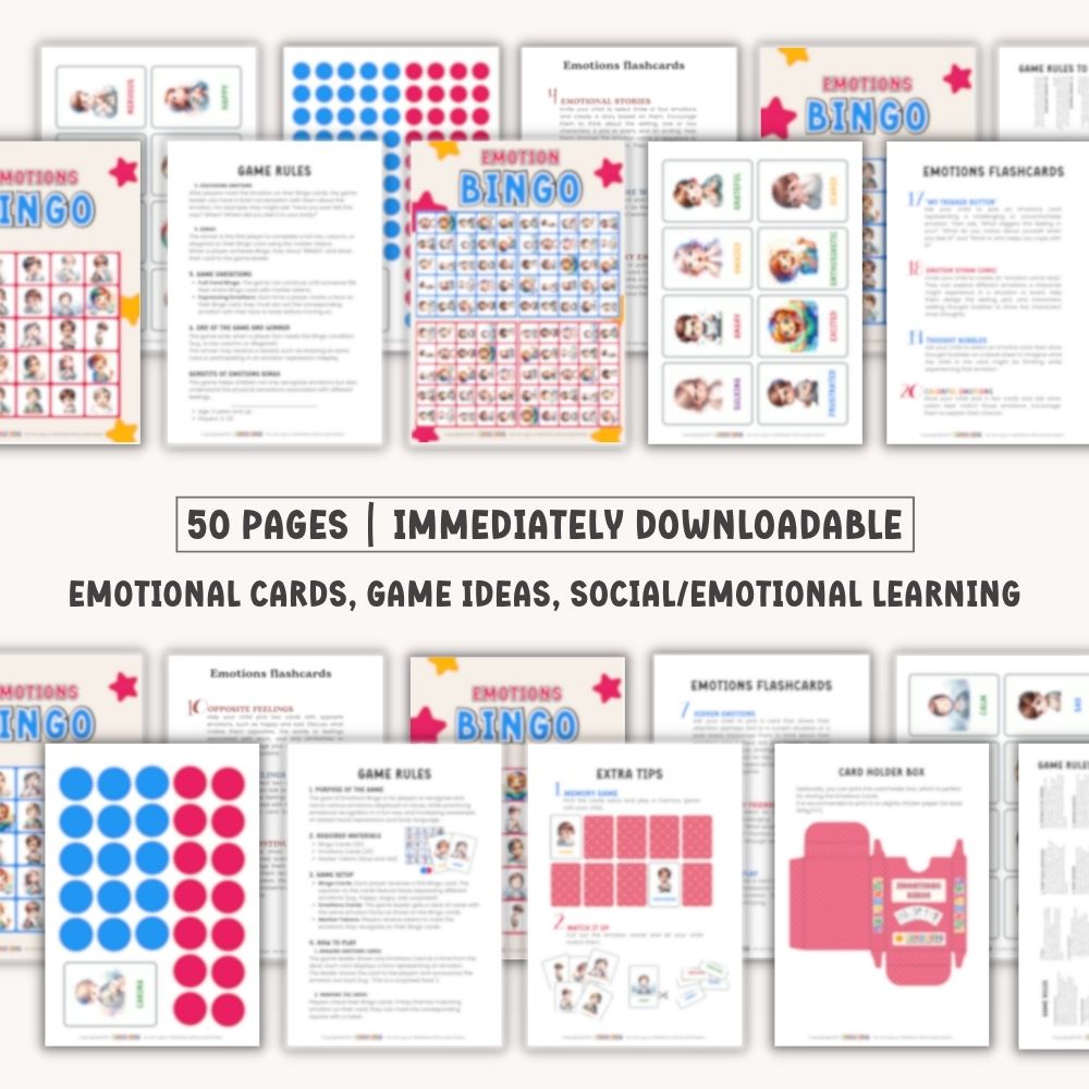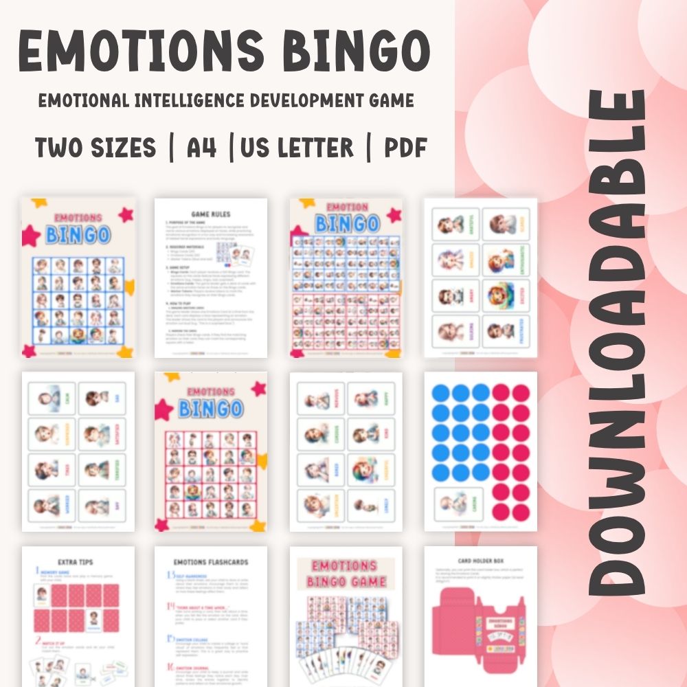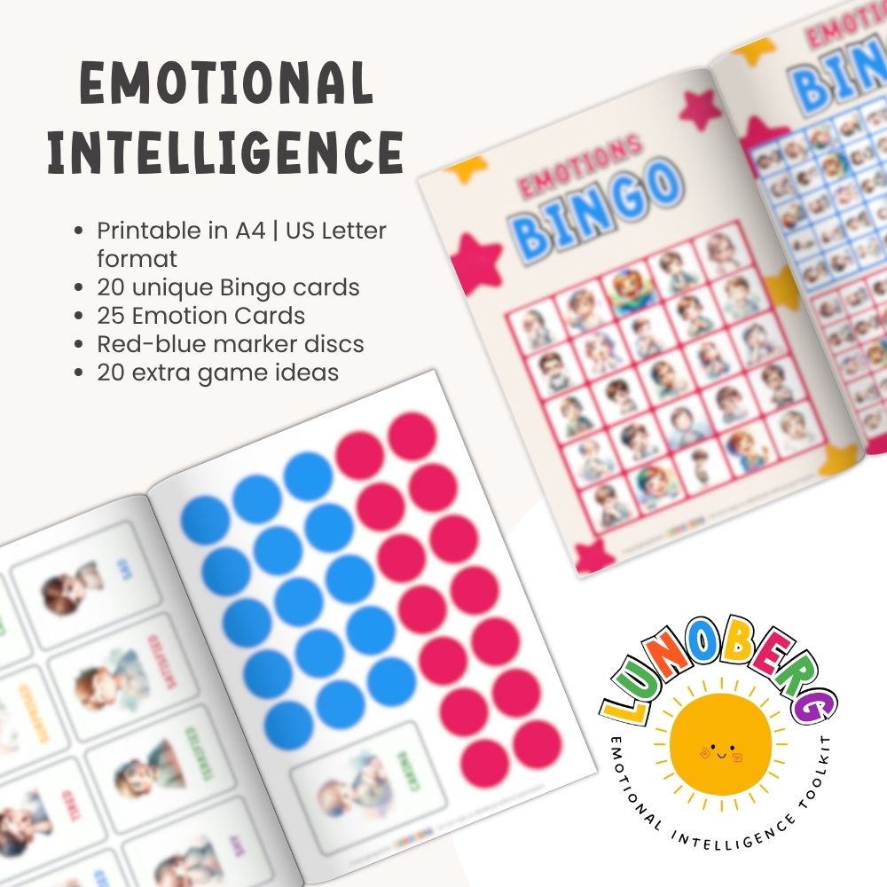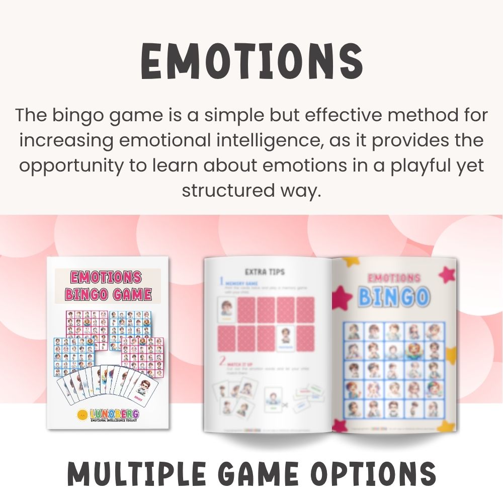 Emotions Bingo is perfect for family game nights, preschool or school activities, helping children gain confidence and awareness in managing their emotions—all while having fun. Try it out and turn emotional education into a joyful shared adventure!